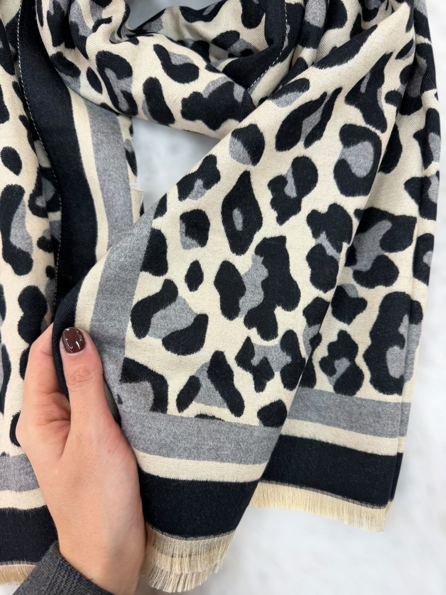 Sciarpa morbida con disegni geometrici grigio – Theorema Pelle