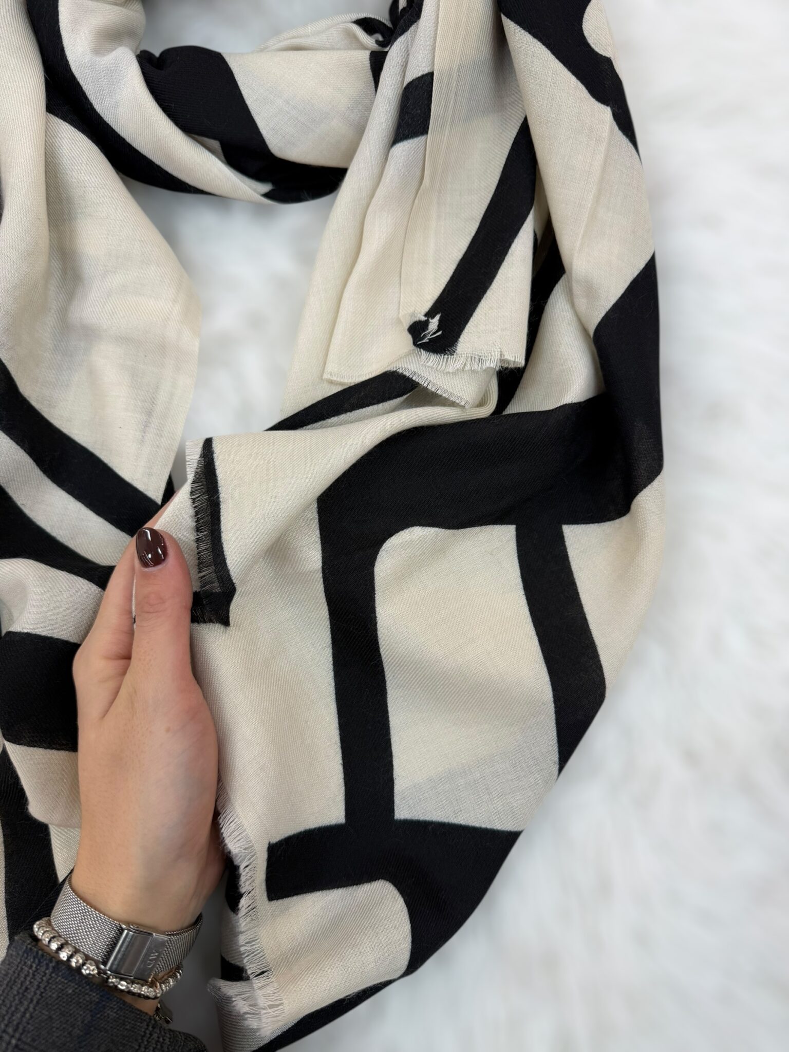 Sciarpa morbida con disegni geometrici panna – Theorema Pelle