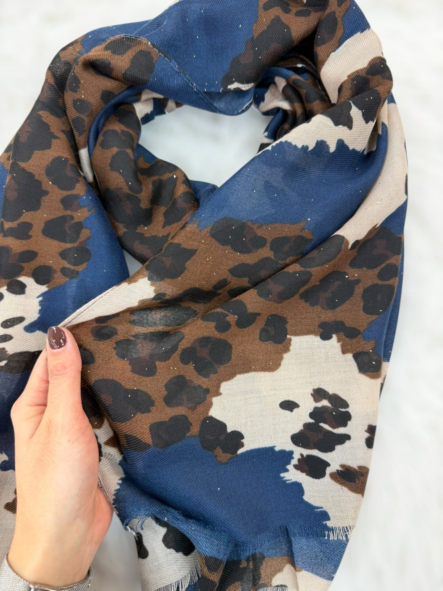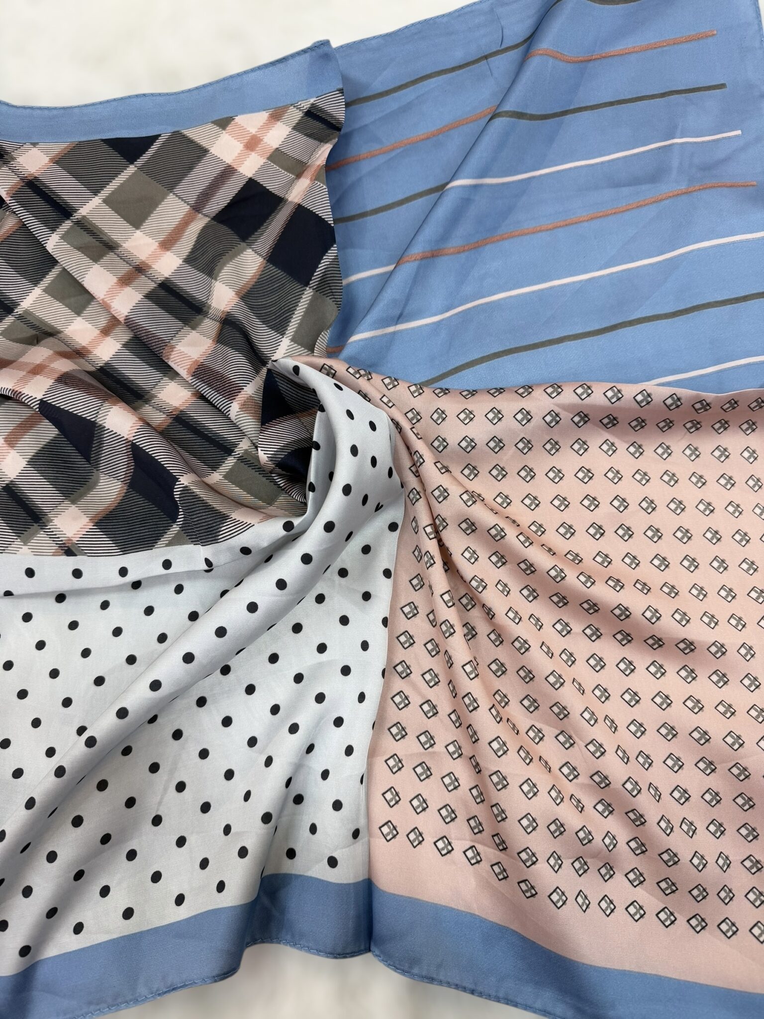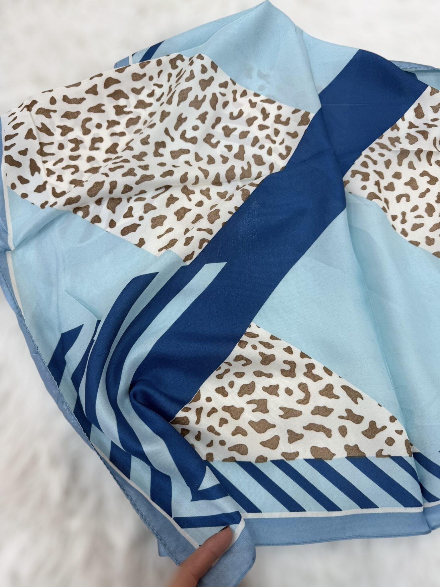 Foulard quadrato multi fantasia celeste – Theorema Pelle