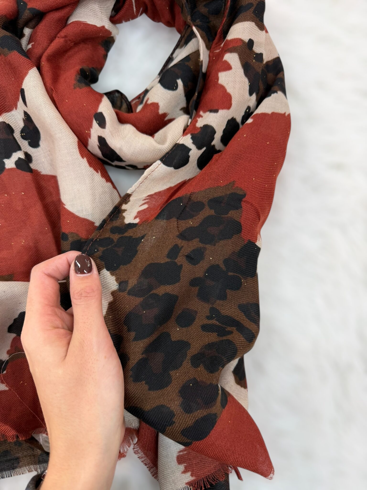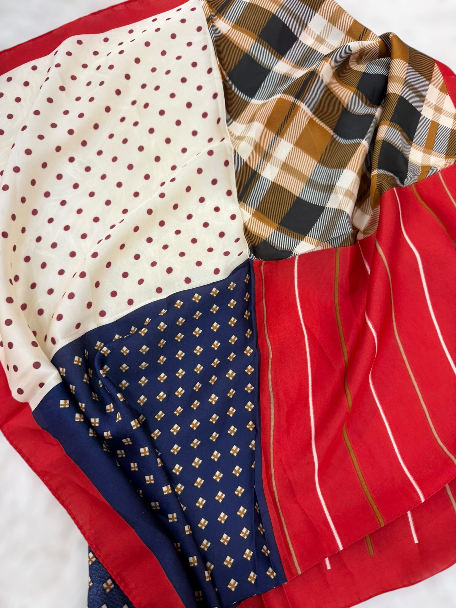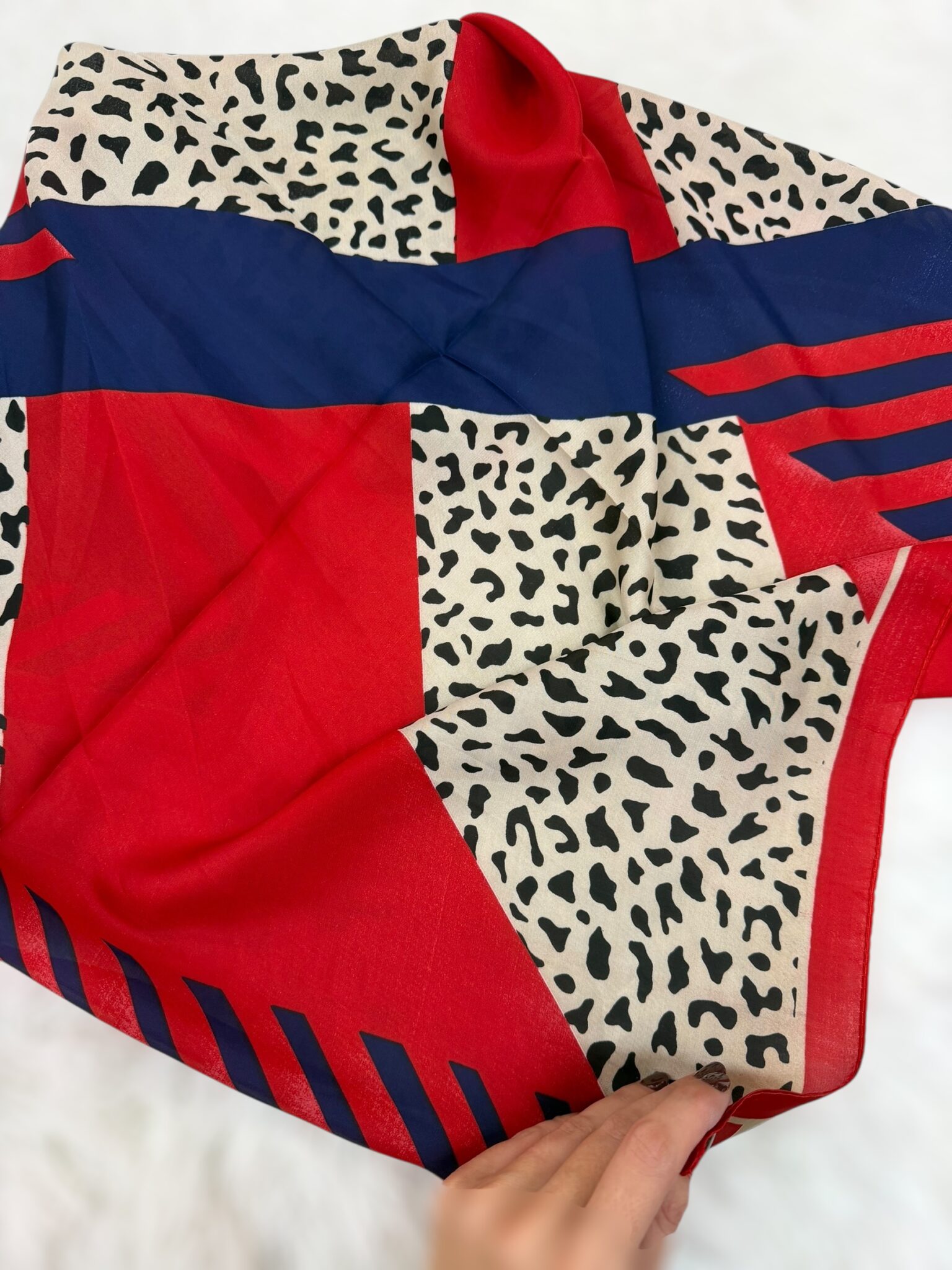 Foulard quadrato multi fantasia rosso – Theorema Pelle