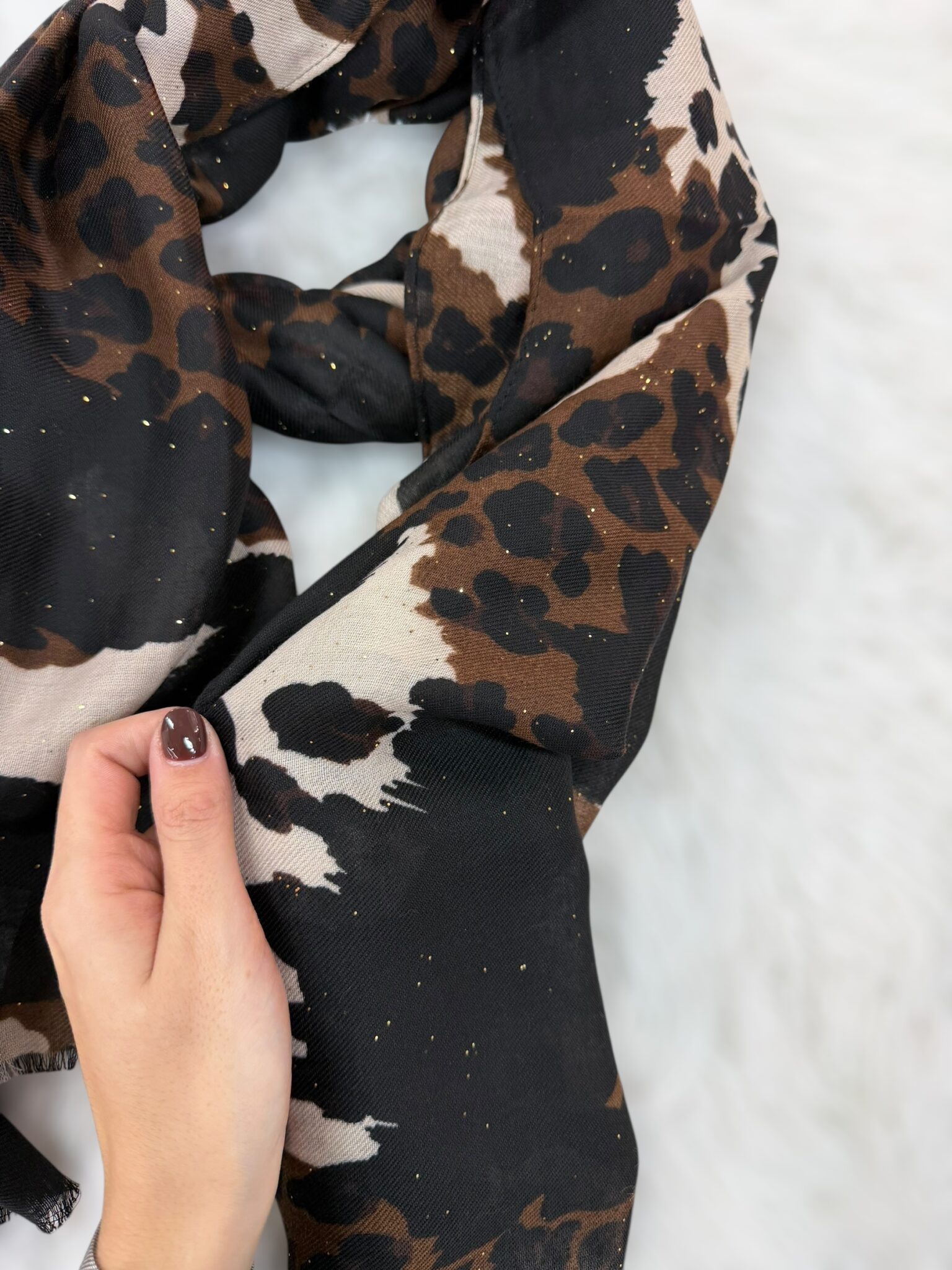 Foulard quadrato in fantasia nero – Theorema Pelle