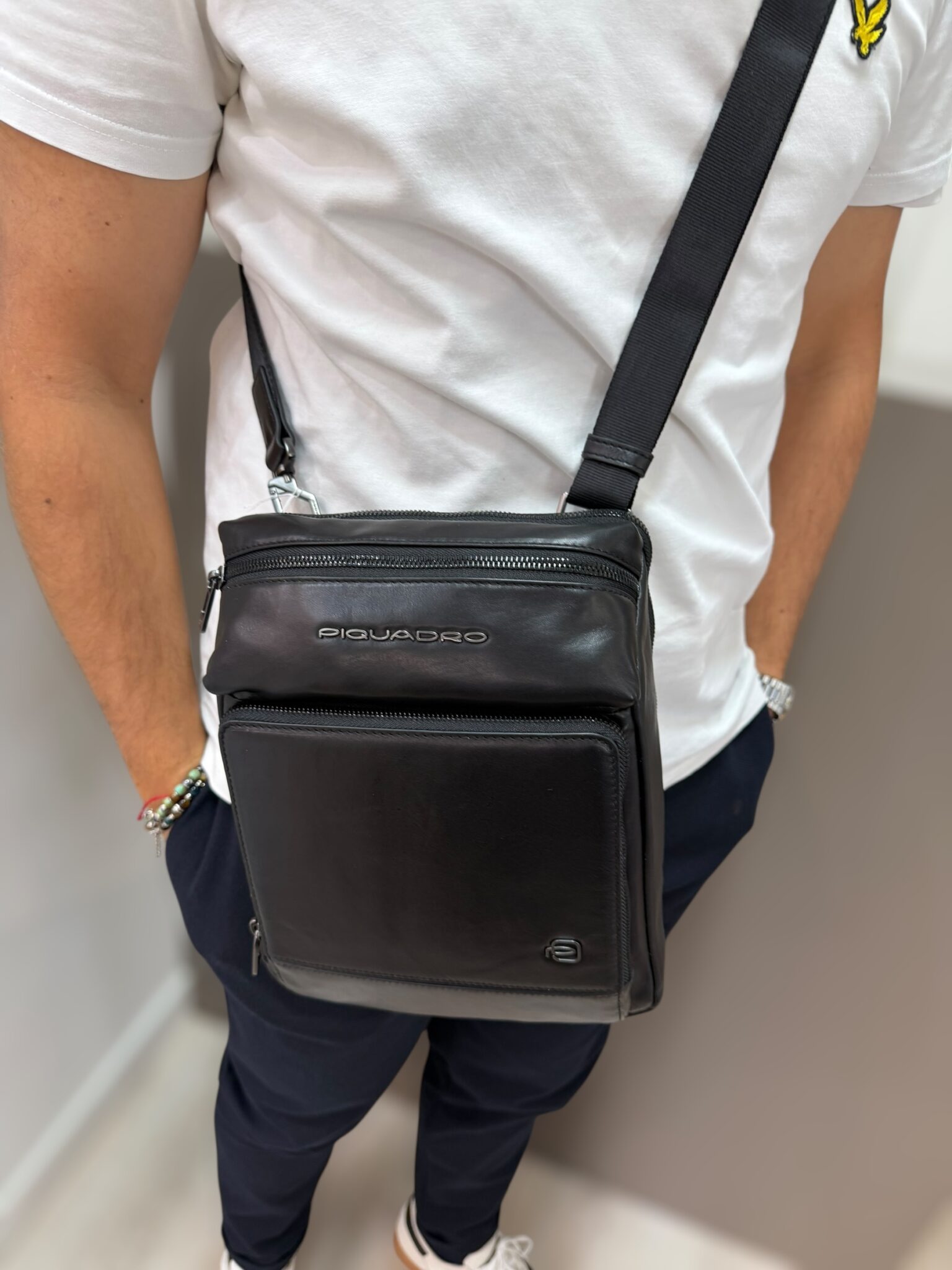 Tracolla grande uomo in tessuto con doppia zip nero – Piquadro