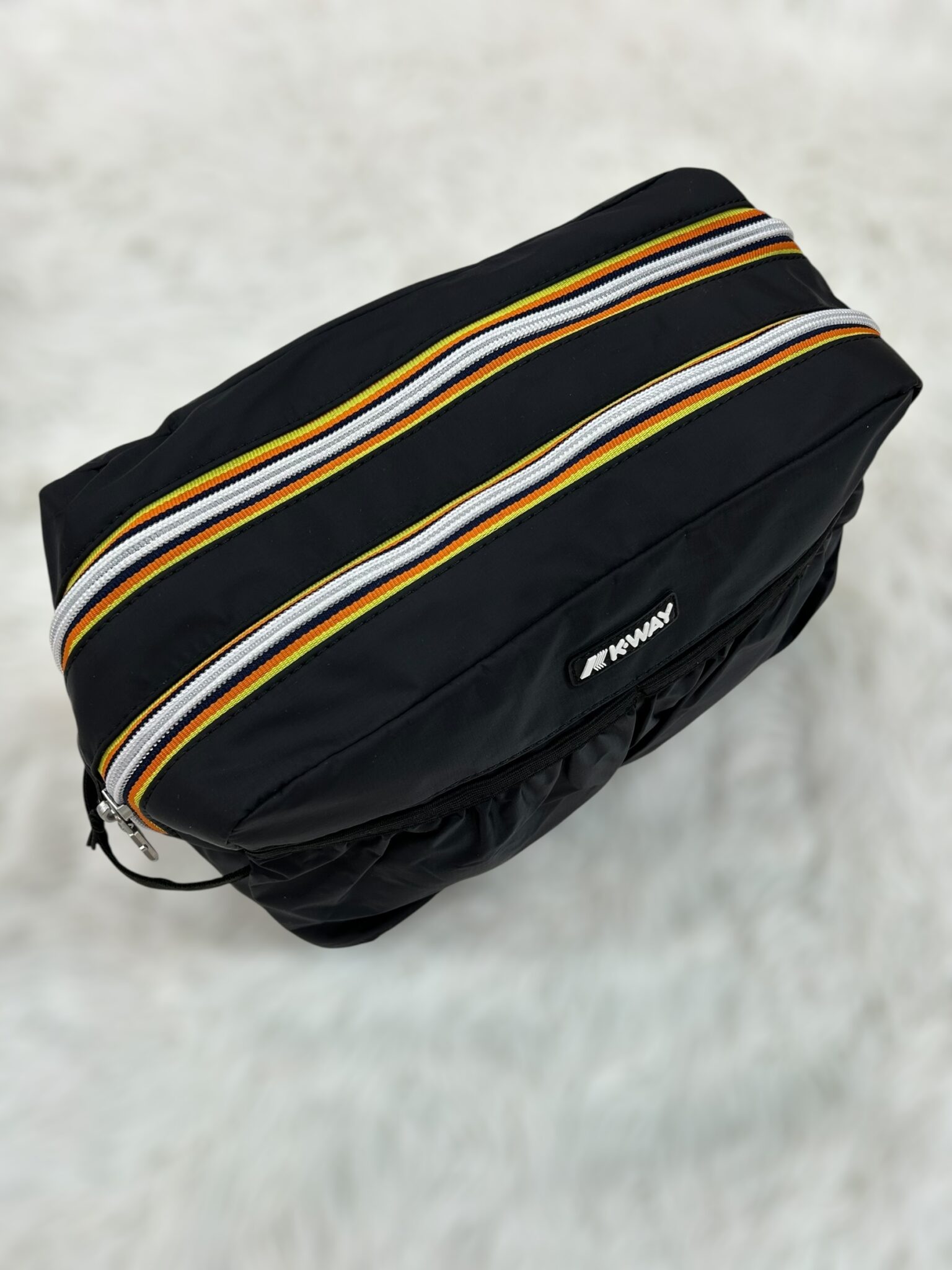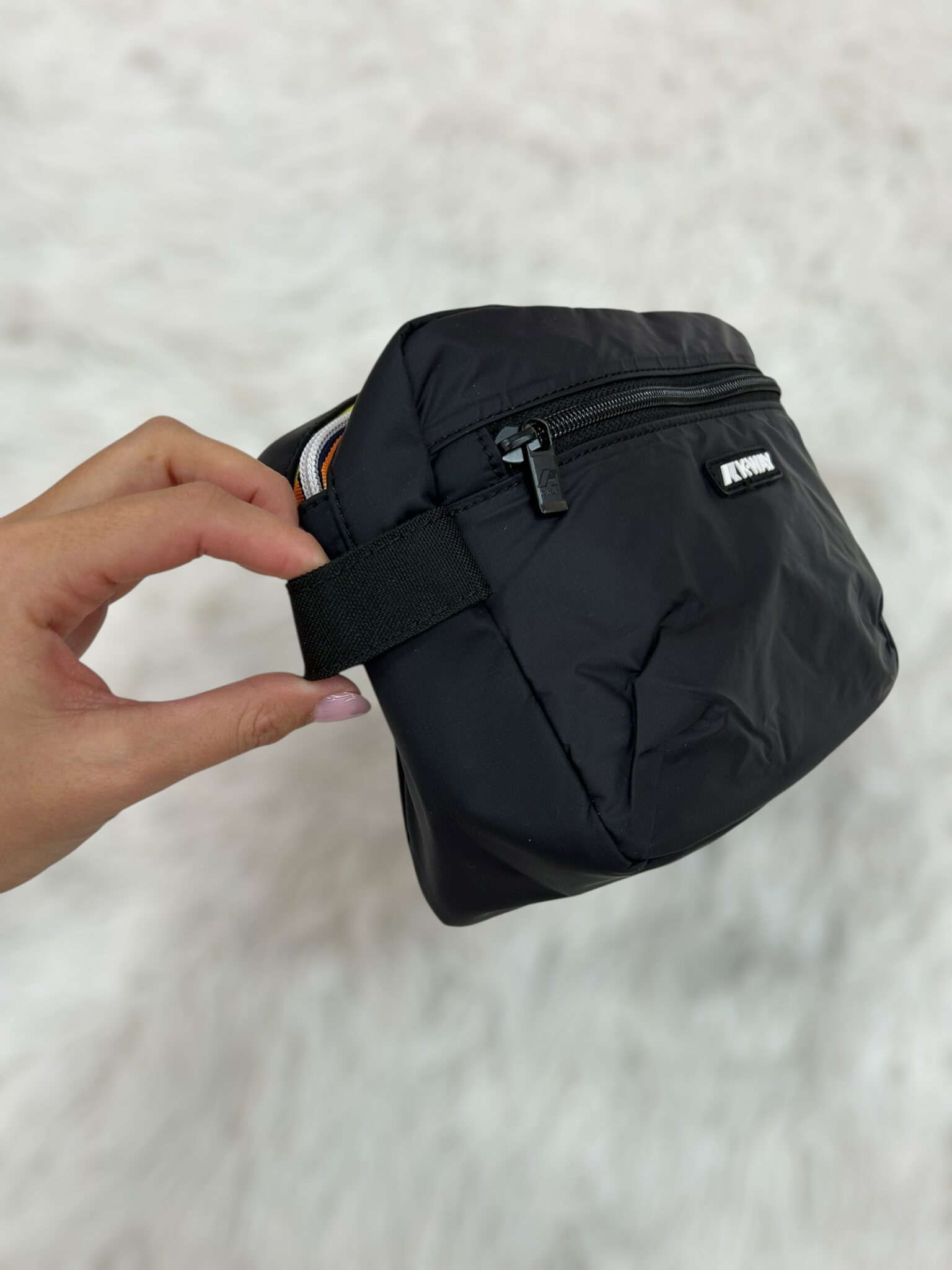 Beauty realizzato in leggero nylon impermeabile con doppia zip a contrasto. Interno foderato con molteplici inserti interni porta oggetti. Dotato del manico laterale e di due comode tasche frontali.
