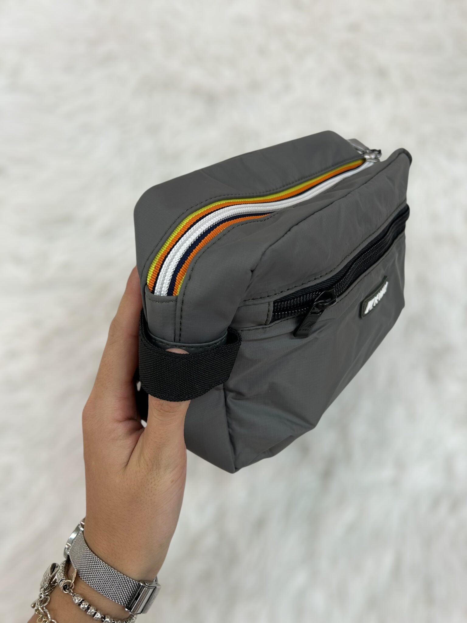 Beauty realizzato in leggero nylon impermeabile con doppia zip a contrasto. Interno foderato con molteplici inserti interni porta oggetti. Dotato del manico laterale e di due comode tasche frontali.