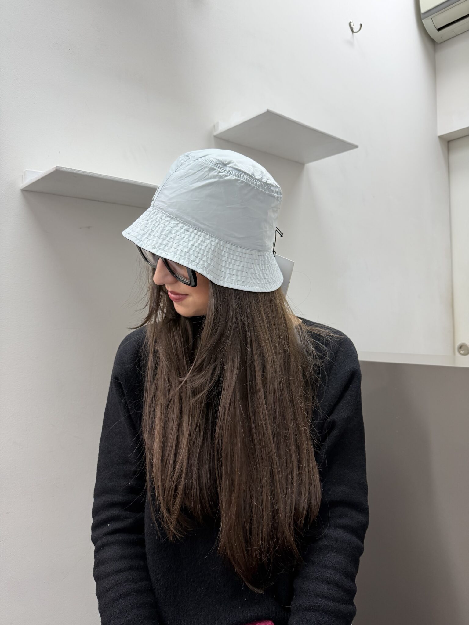 Cappello da pioggia reversibile in leggero nylon.