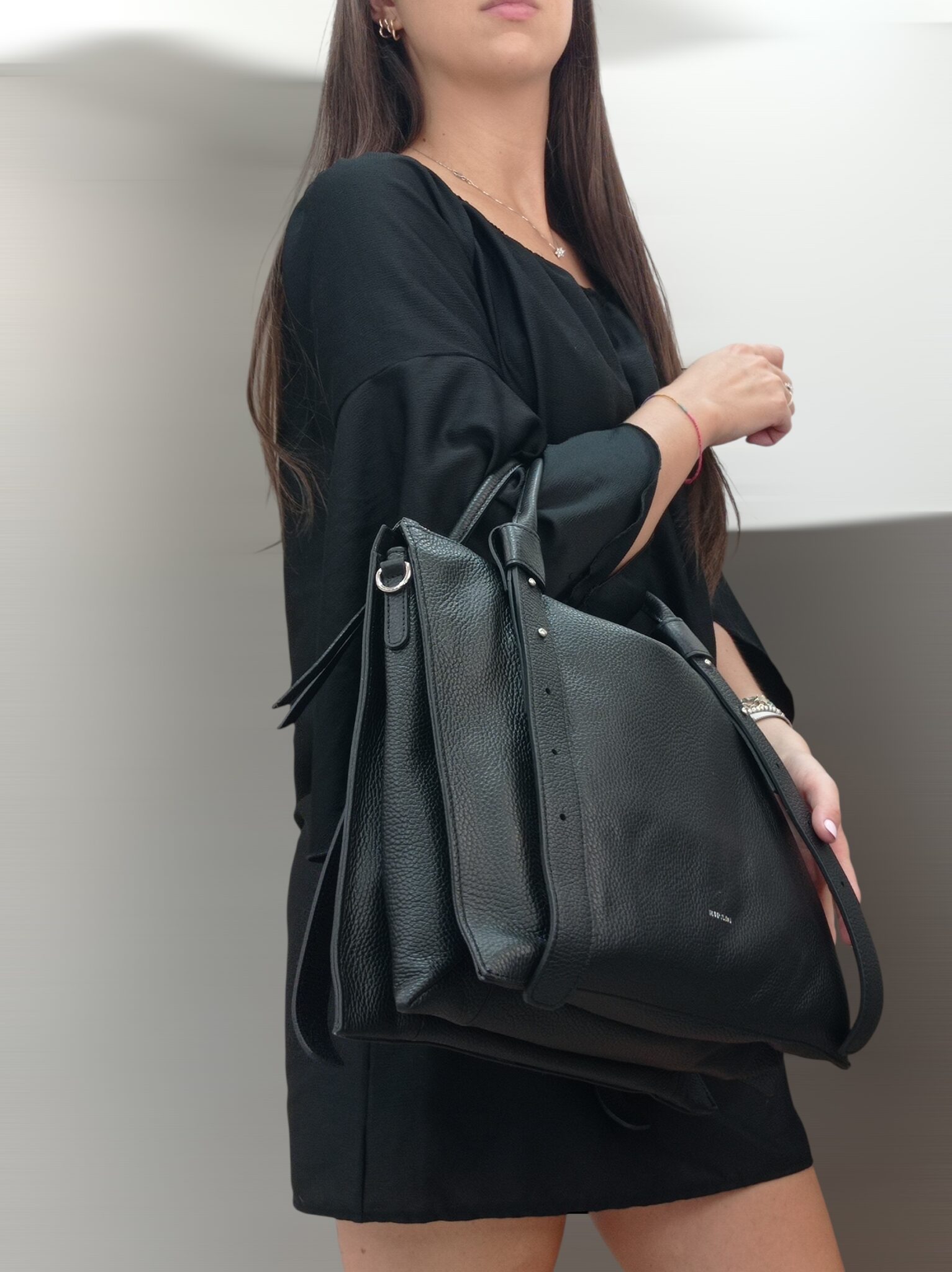 La borsa Gabs G3 Plus è realizzata in vera pelle martellata. Trasformabile in forma piatta, sacca, shopping e bauletto.