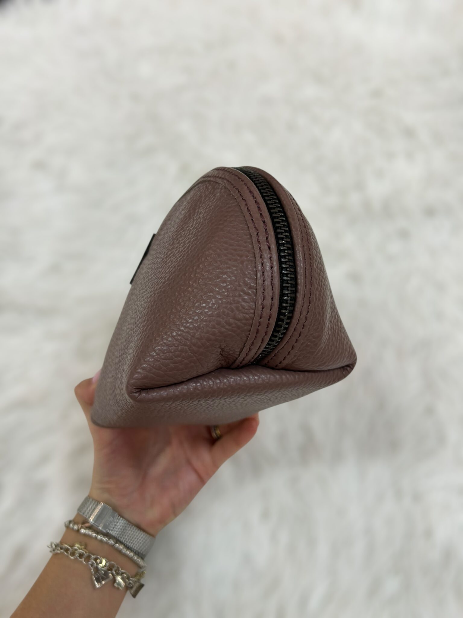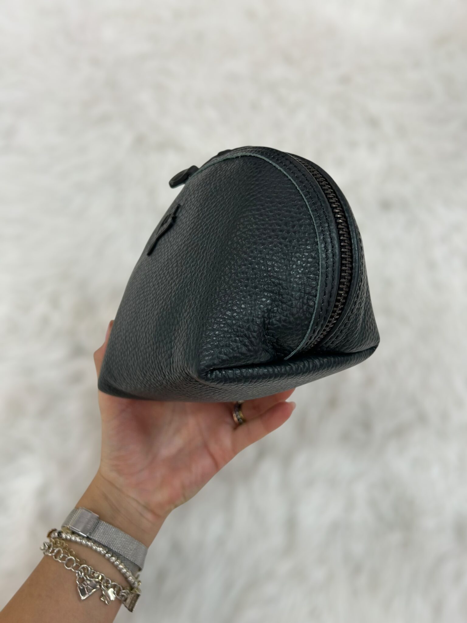 Beauty bombolino realizzata in morbida pelle martellata. Chiusura con zip. La base ampia ci permettere di avere un beauty piccolo ma capiente. Interno foderato.