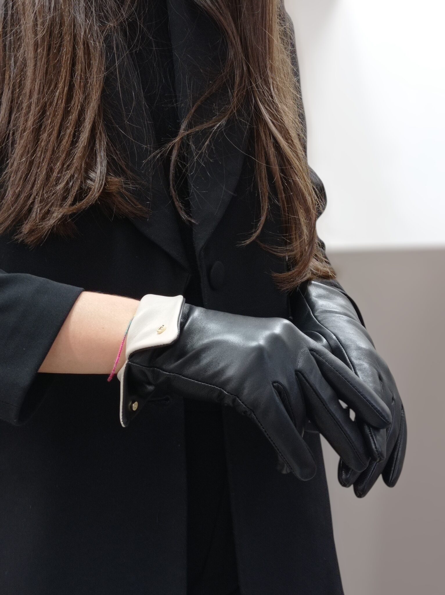 Guanto donna in vera e morbida pelle nappata con maxi fiocco. L’ interno è interamente rivestito in calda lana.
