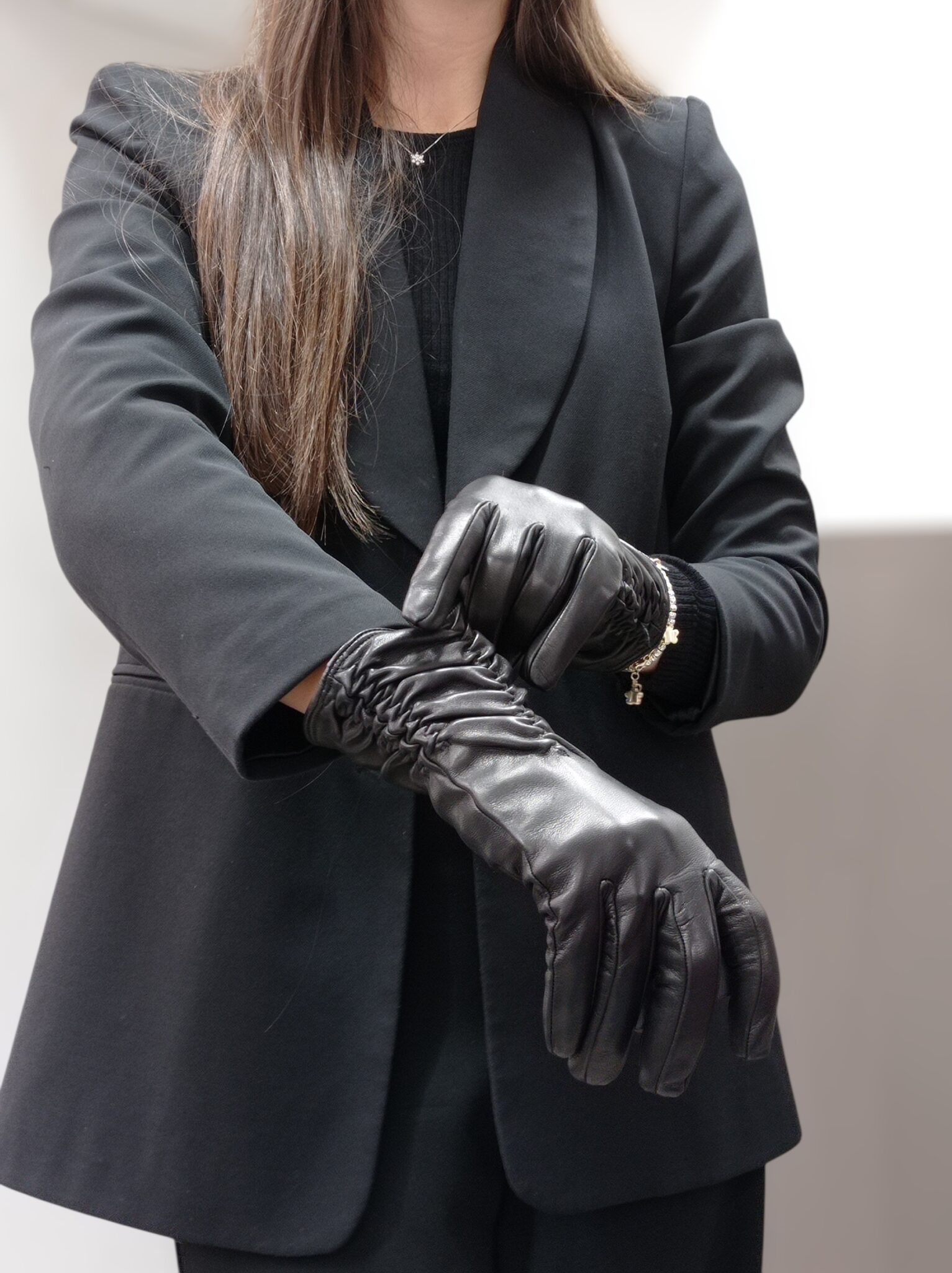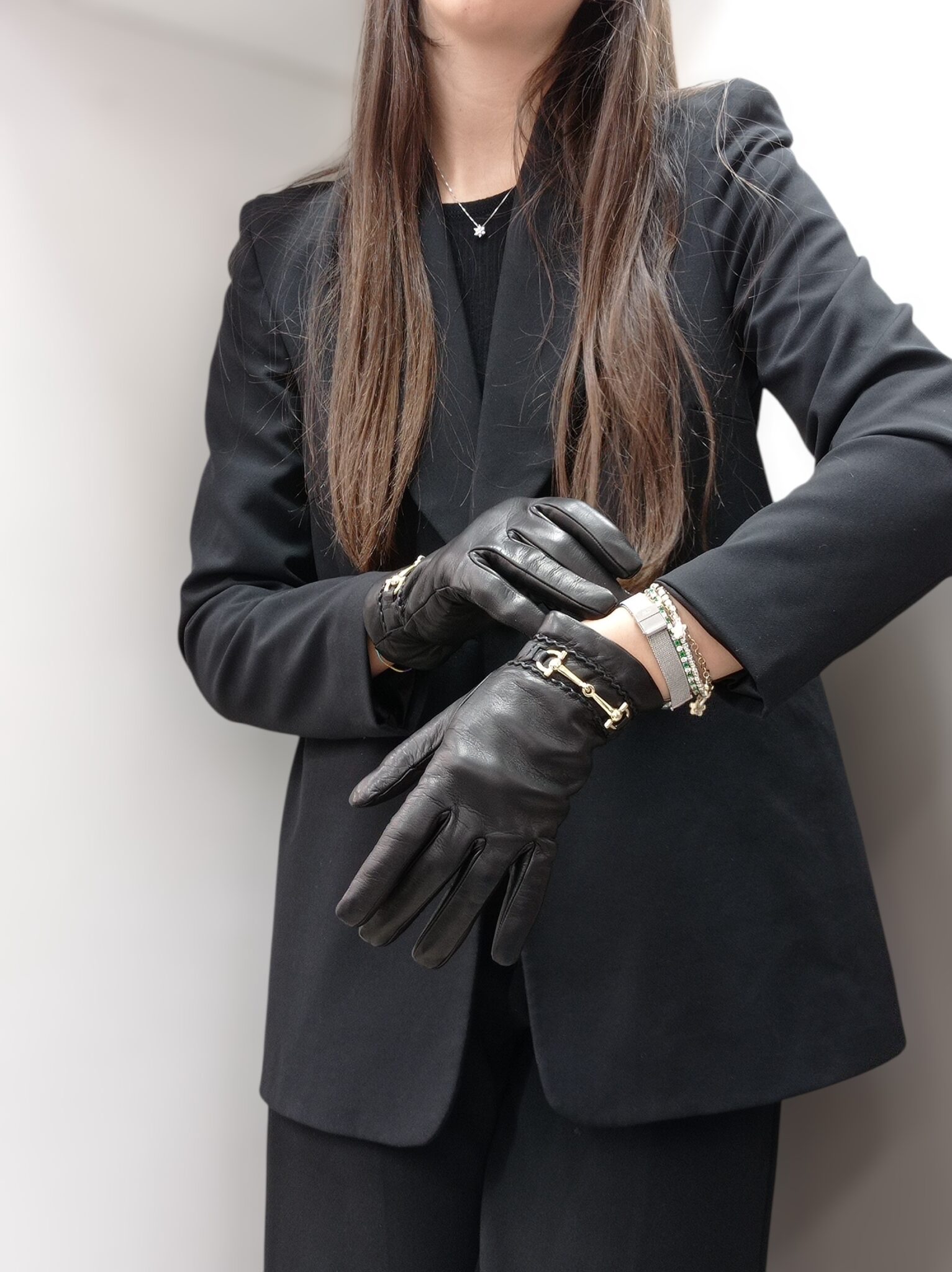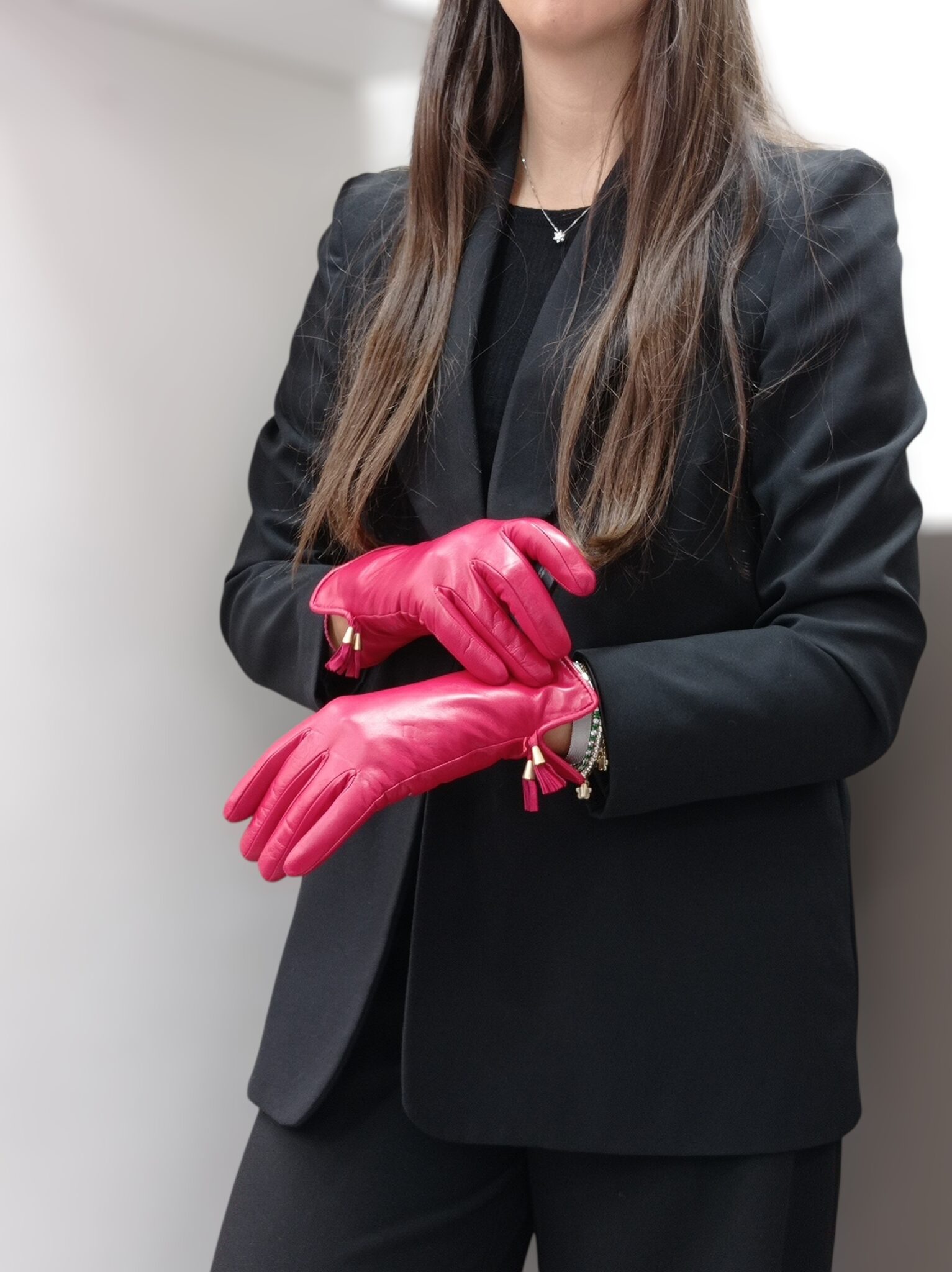 Guanti donna lisci con nappine nero tg. 7 1/2 – Giada Parisi
