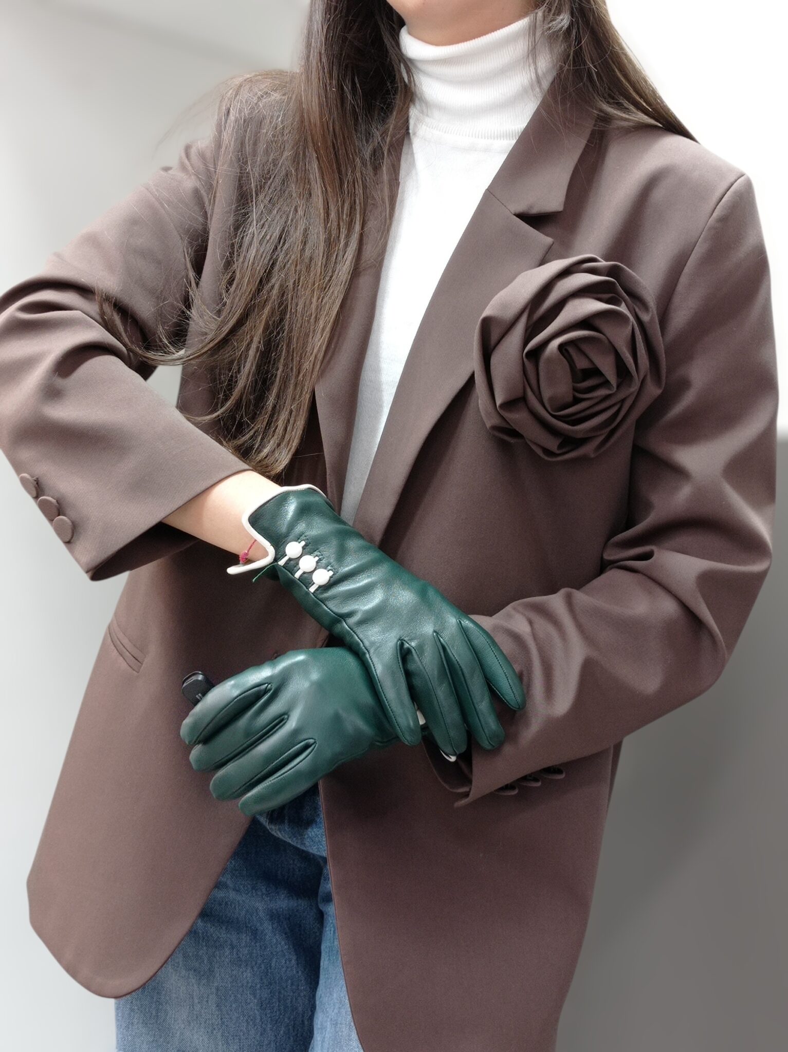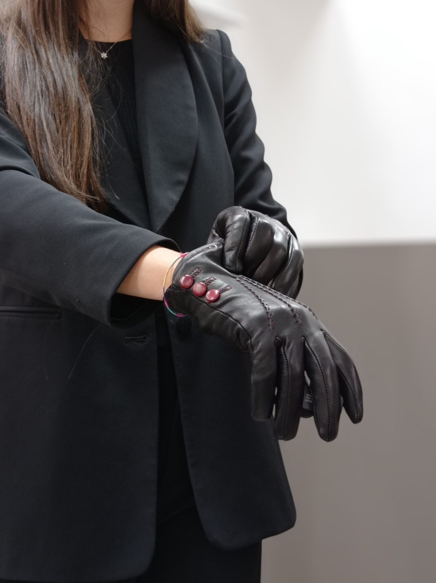 Guanto donna in vera e morbida pelle nappata. L’interno è interamente rivestito in calda lana. Il guanto si presenta liscio senza dettagli.