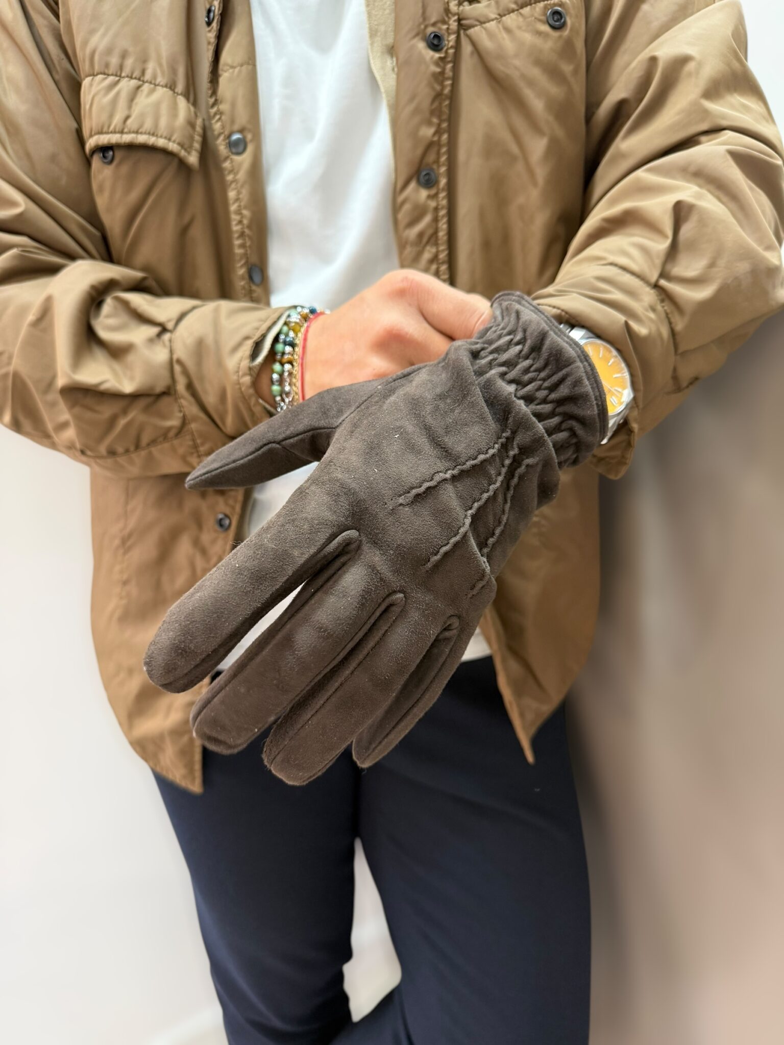 Guanti uomo realizzati in morbida pelle nappata tutti i profili impunturati. Interno realizzato in calda lana.