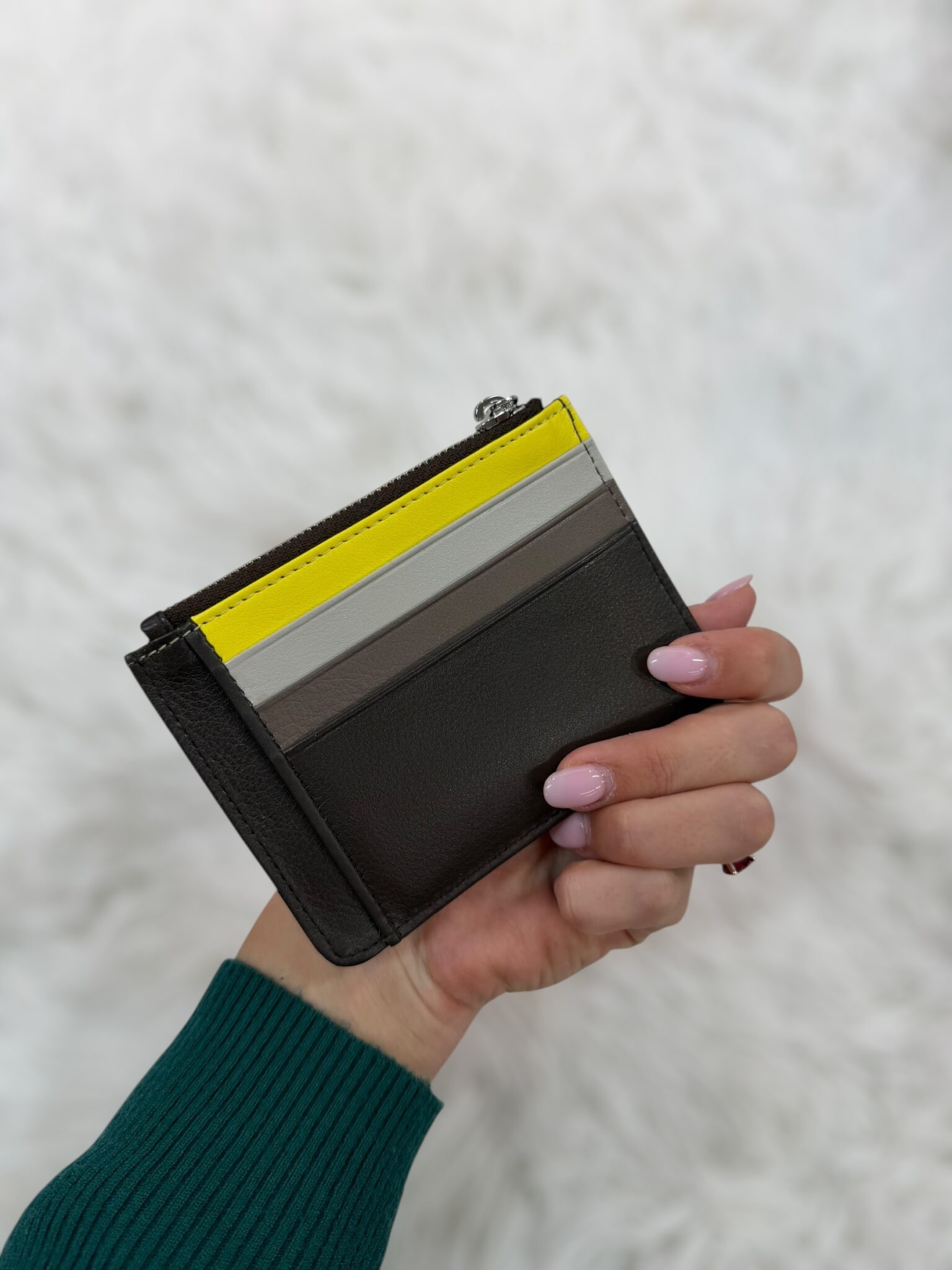 Portacarte realizzato in vera pelle con zip. Dispone di 6 inserti per carte di credito, 2 scomparti più ampi laterali per documenti e della zip nella parte superiore per monete e contanti.