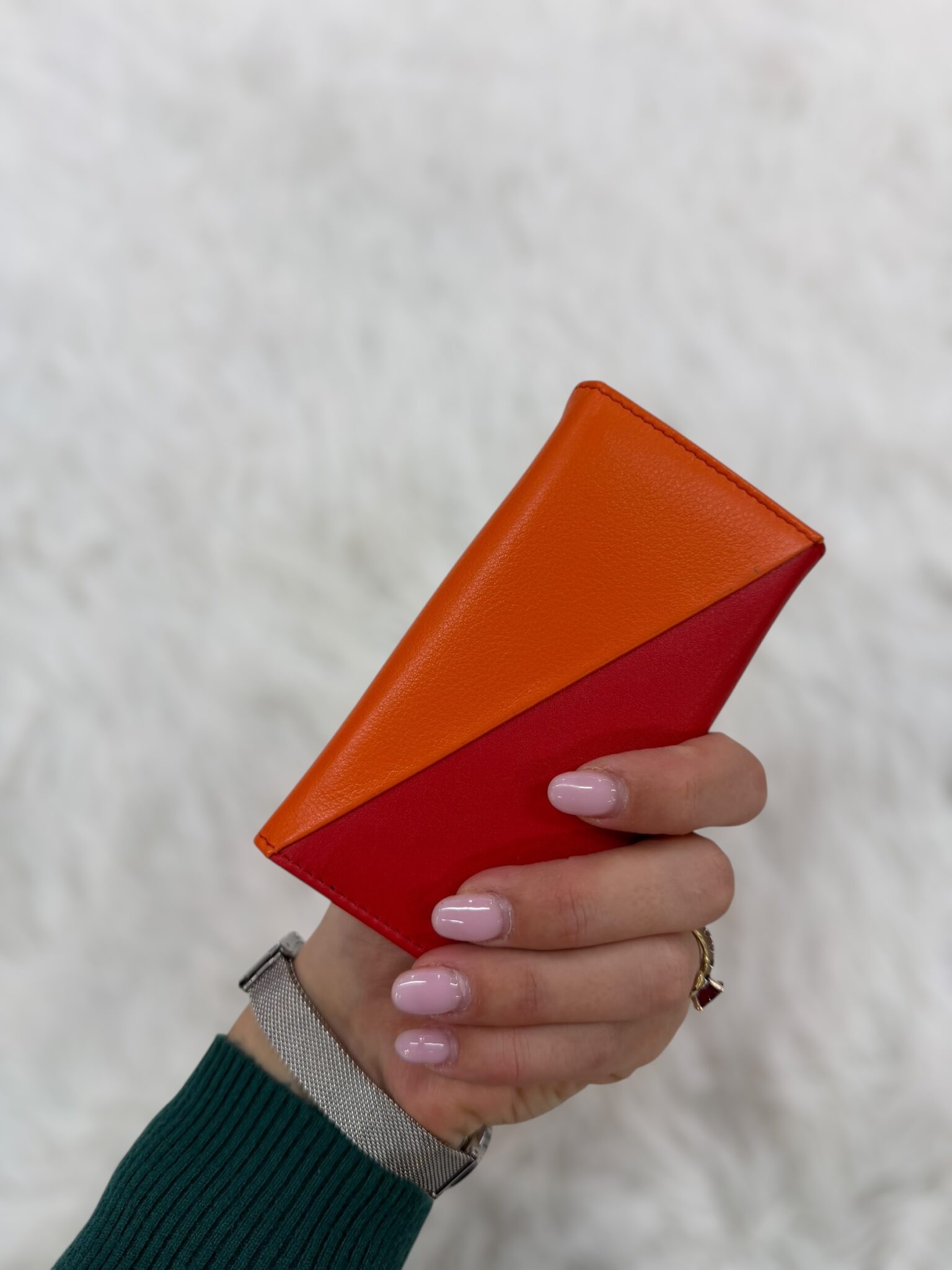 Bustina realizzata in vera pelle nappata, morbida, con tasca esterna frontale. Chiusura principale con zip. L’interno è foderato e dispone di 2 anelli per le chiavi.