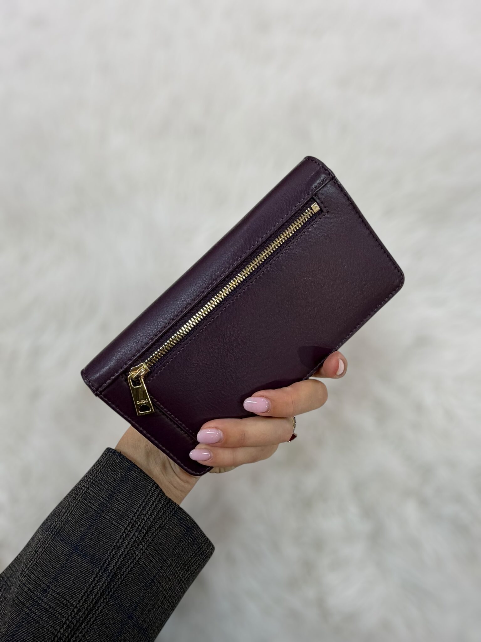 Portafoglio verticale realizzato in vera pelle nappata colorata, dotato di 8 fessure per carte di credito, 3 per documenti, 1 per banconote e zip esterna con doppio scomparto per le monete.