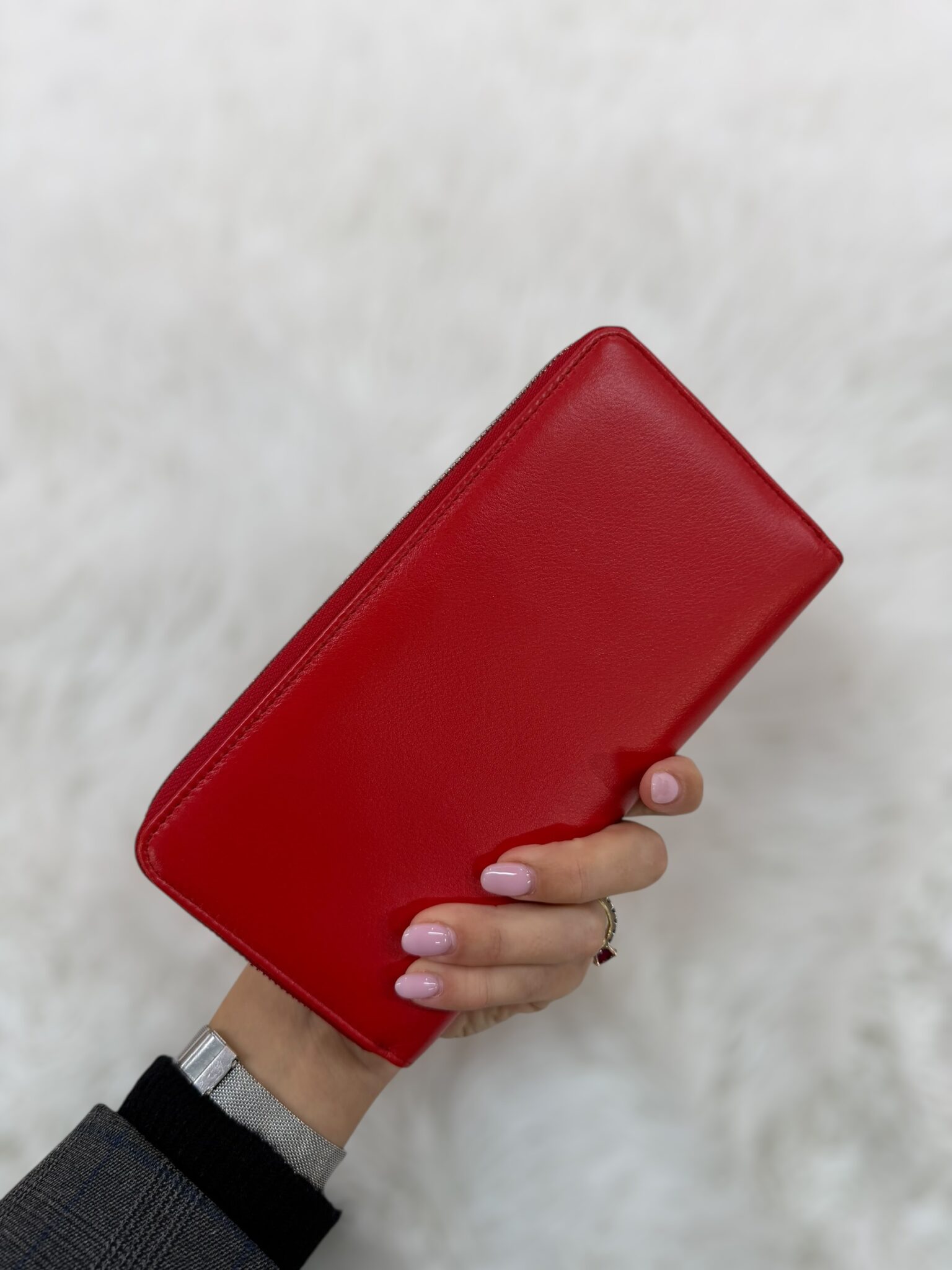 Portafoglio grande ma compatto realizzato in vera pelle nappata con chiusura bottone. Dispone di 8 fessure per carte di credito, uno scomparto per documenti, 2 scomparti per banconote e della zip centrale per le monete.