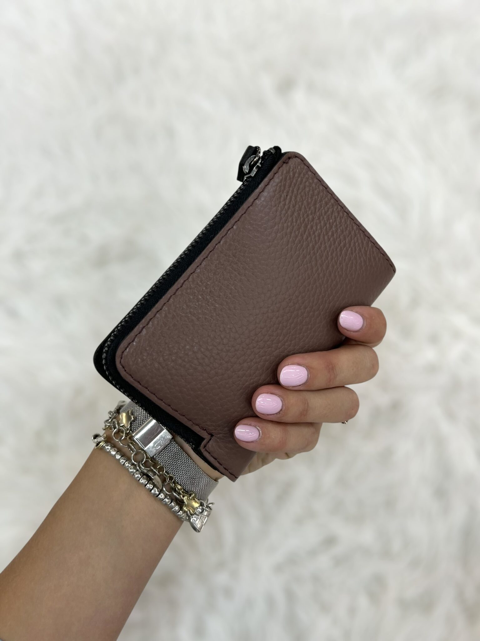Portafoglio verticale compatto con apertura a bottone. Dispone di 8 fessure per carte di credito, 2 scomparti più ampi e scomparto superiore per banconote. All’esterno, oltre alla zip per le monete, dispone di 2 ulteriori scomparti.