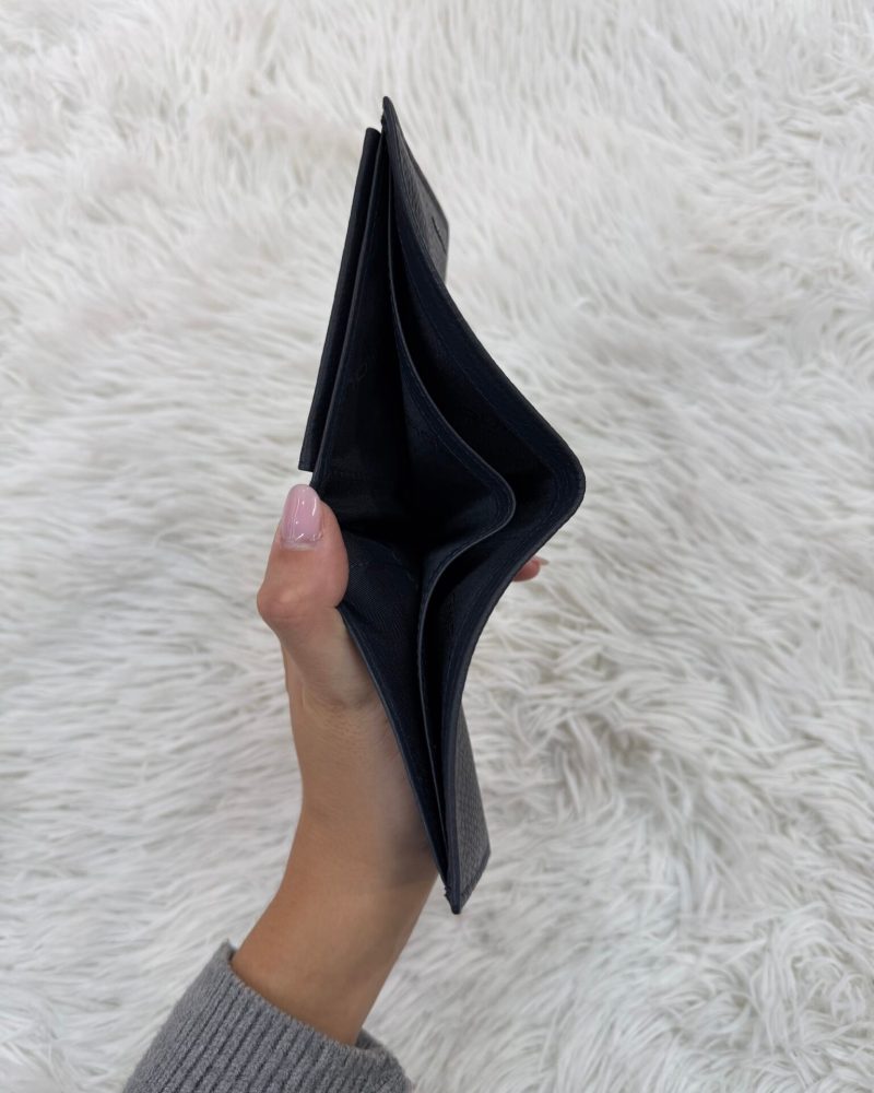 Portafoglio in vera pelle martellata con 6 fessure per carte di credito, 2 per documenti e 2 per le banconote.