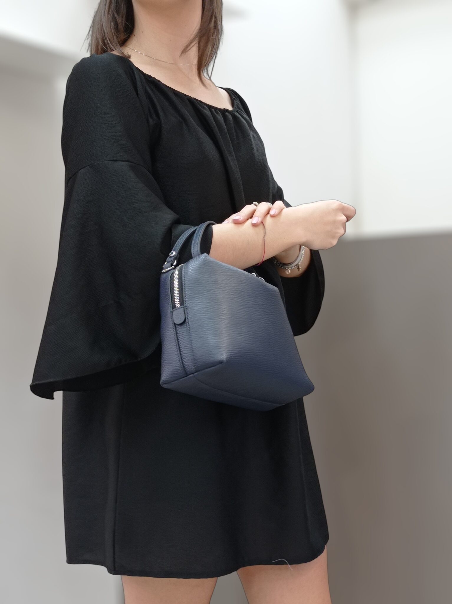 La Helena Round di Gianni Chiarini è una postina dal design compatto e contemporaneo, realizzata in pelle martellata morbida e resistente, ideale per accompagnarti ogni giorno con stile. Si indossa a bandoliera grazie alle due tracolle intercambiabili: una in tessuto a contrasto per un look più sportivo e una in pelle tono su tono per un’eleganza più discreta, entrambe regolabili. L’interno è suddiviso in doppio scomparto foderato: uno dotato di tasca con zip e l’altro di taschina aperta per organizzare al meglio gli oggetti personali. Sul retro è presente una pratica tasca esterna con chiusura zip, perfetta per ciò che vuoi tenere subito a portata di mano.