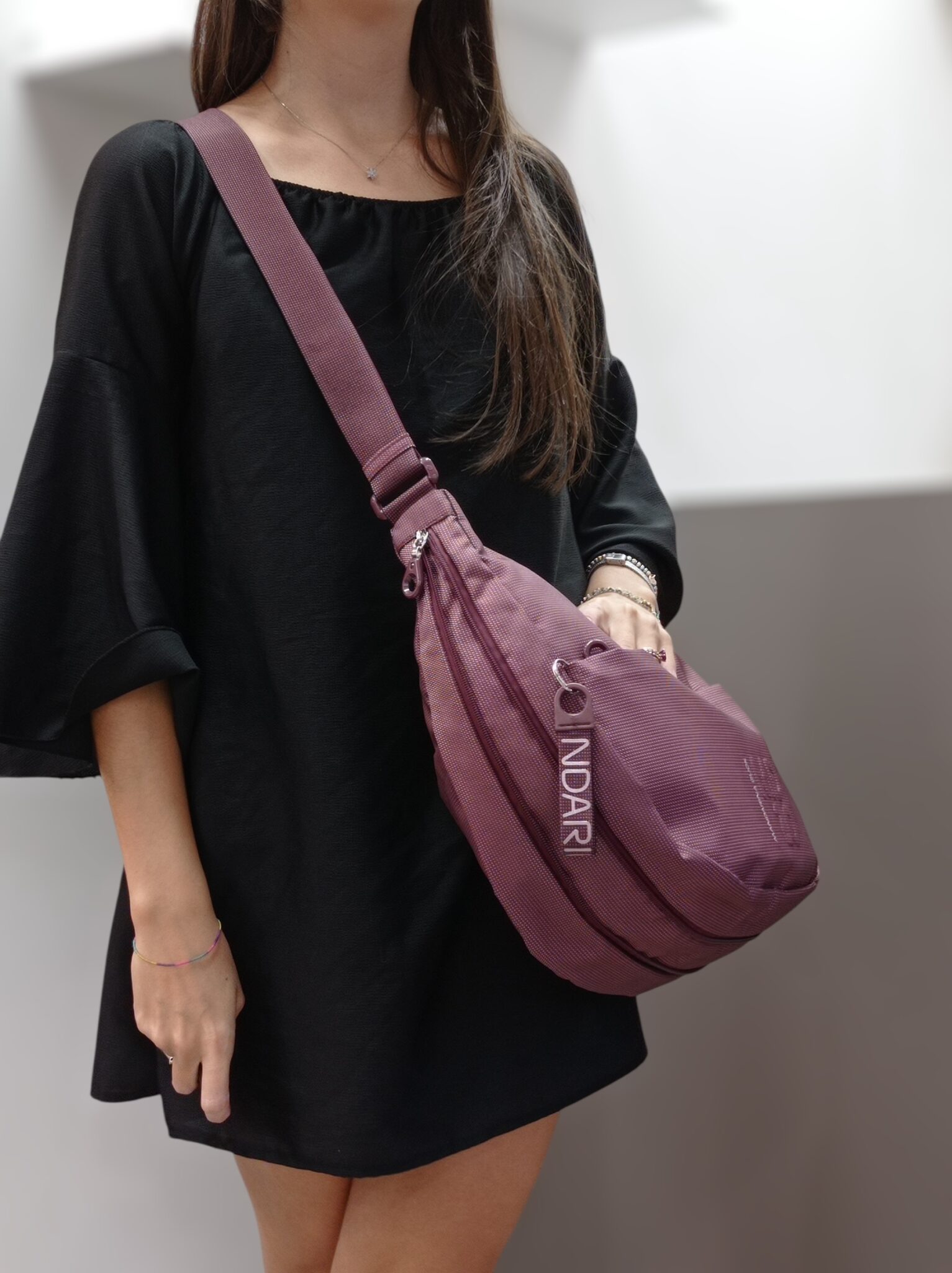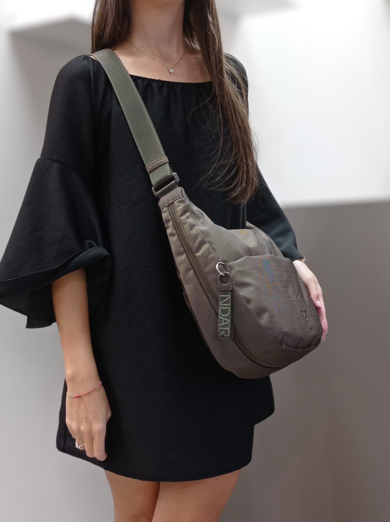 Shopper realizzata in leggero nylon impermeabile con  zip a contrasto. Dotata di 2 lunghi manici per essere indossata a spalla. Interno foderato con tasca con zip porta oggetti. Dotata inoltre di una comoda tasca con la zip nella parte frontale.