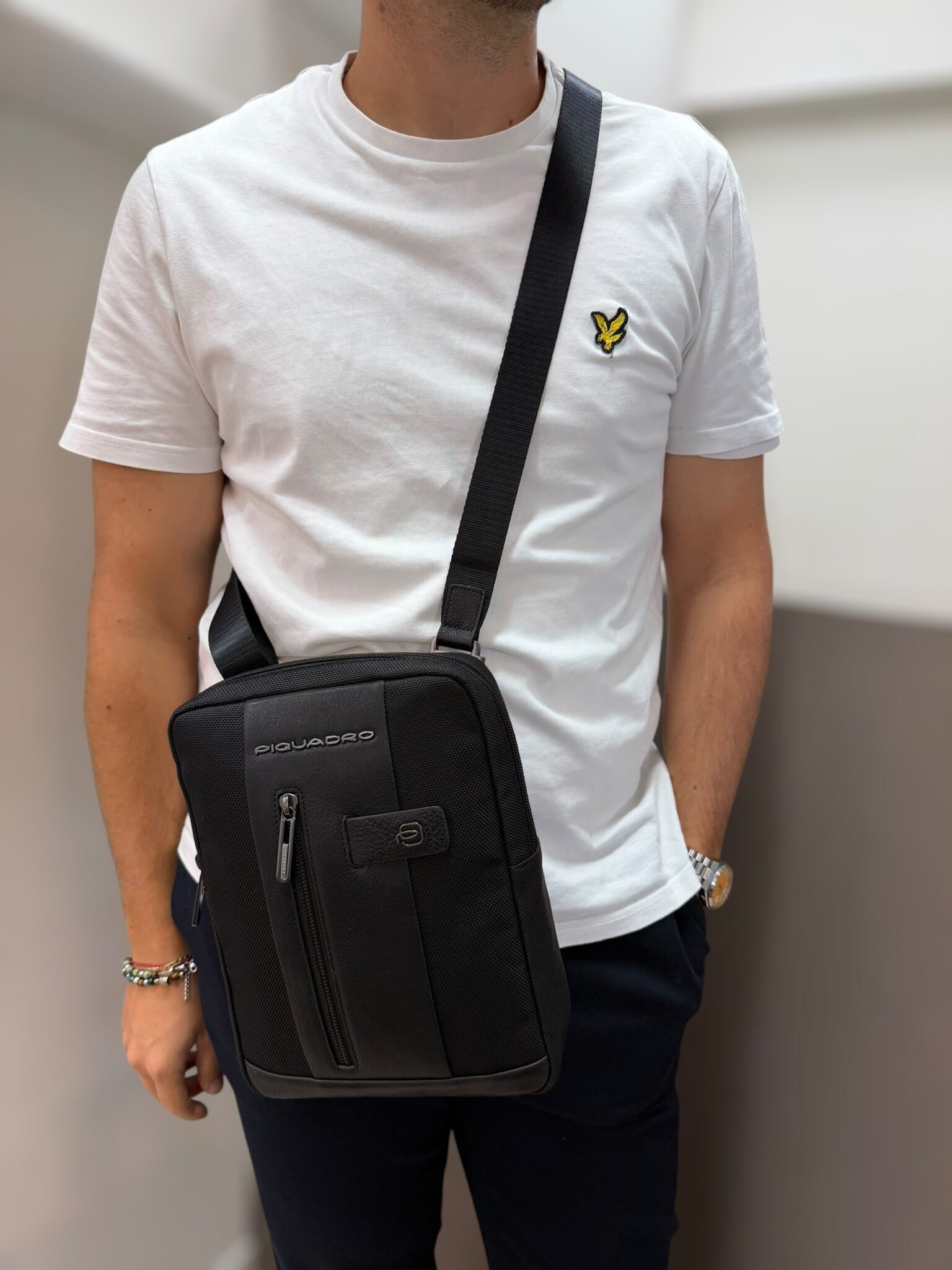 Tracolla grande uomo in tessuto verde – Piquadro