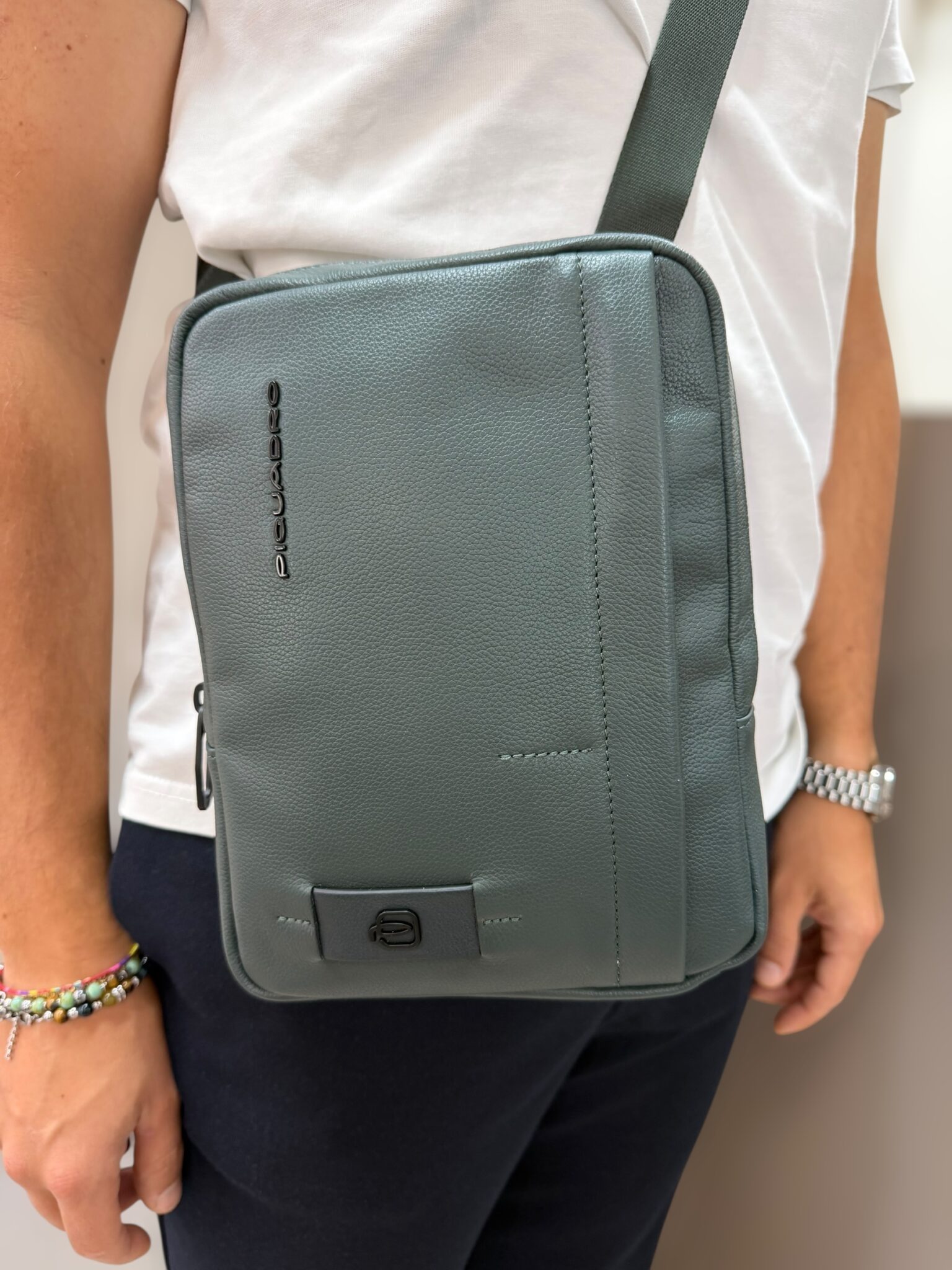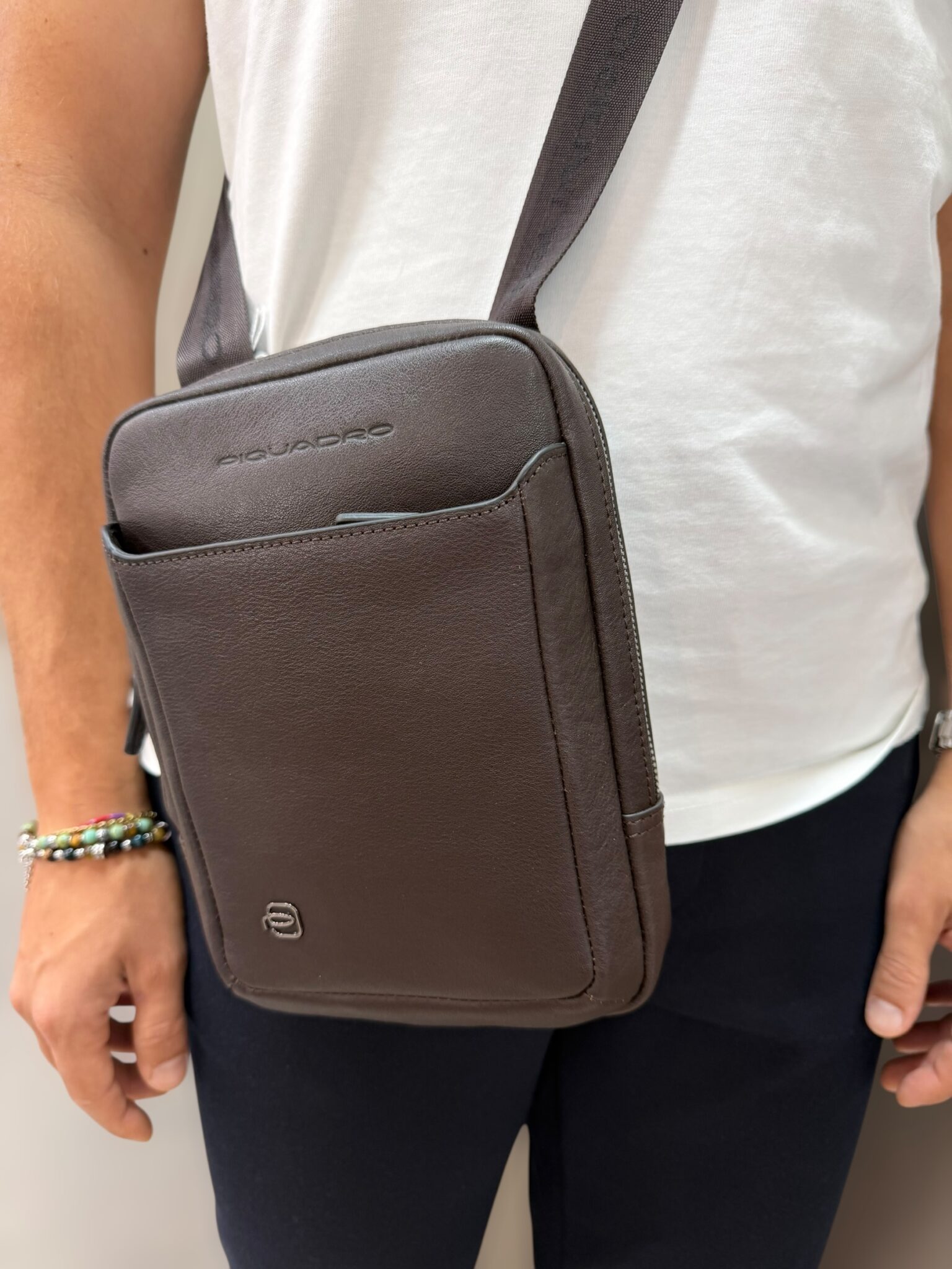 Tracolla piccola uomo in pelle mogano – Piquadro