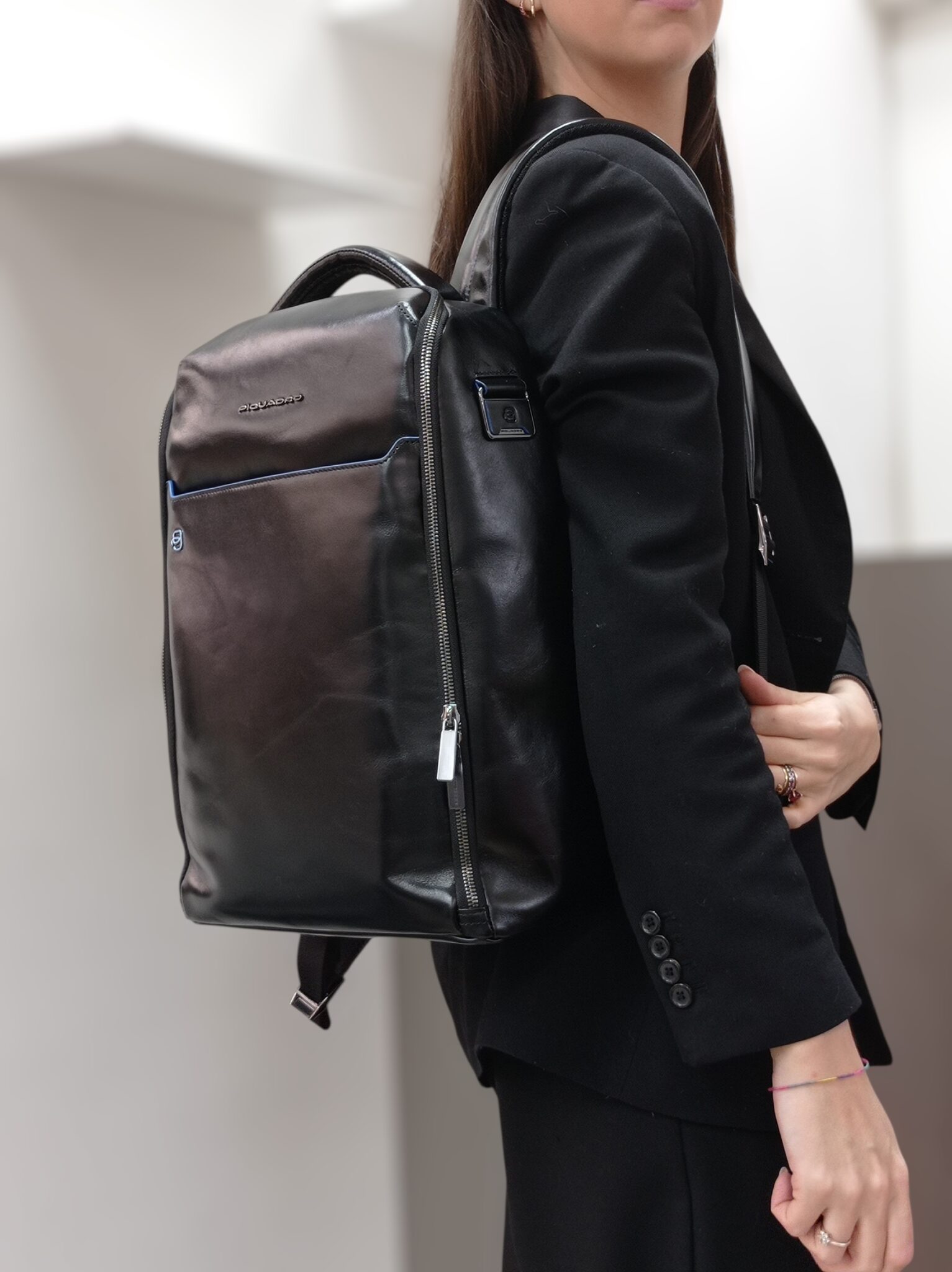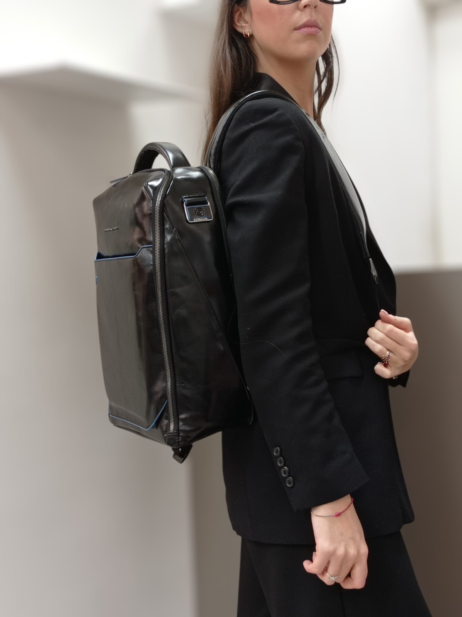 Gli interni sono foderati e ricchi di piccoli inserti porta oggetti aperti e chiusi e del doppio inserto imbottito per tablet e pc.