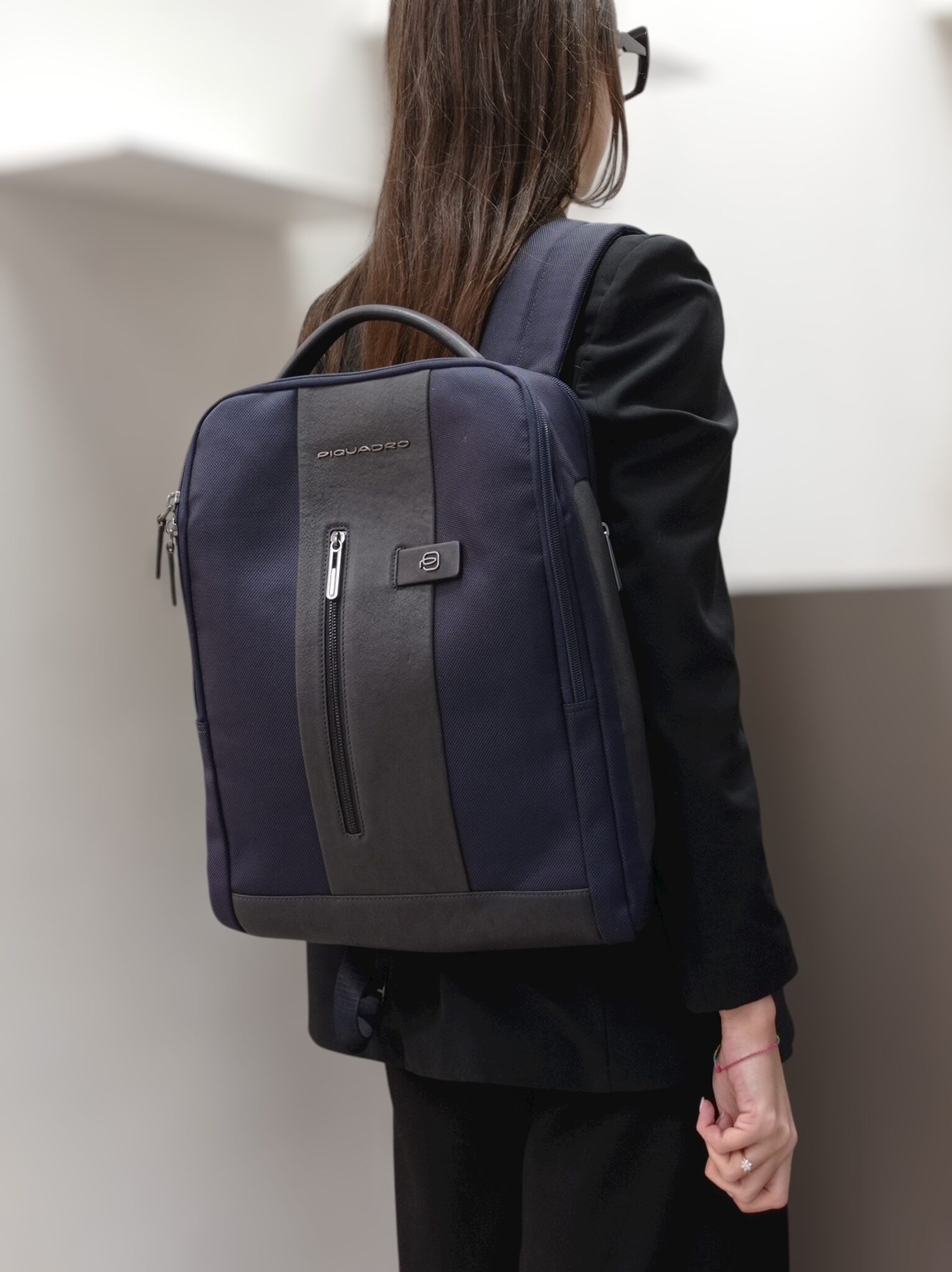 Zaino realizzato interamente in tessuto tecnico impermeabile. Organizzato in 2 scomparti separati con chiusura zip. Interno foderato e dotato di appositi inserti imbottiti per tablet e notebook e inserti vari porta oggetti. Esternamente è dotato di 2 tasche frontali con chiusura zip, 2 tasche laterali porta bottiglia e porta ombrello e nella parte posteriore è dotato della tasca nascosta per riporre oggetti di valore con protezione RFID (anti clonaggio) e dell’inserto per il trolley.