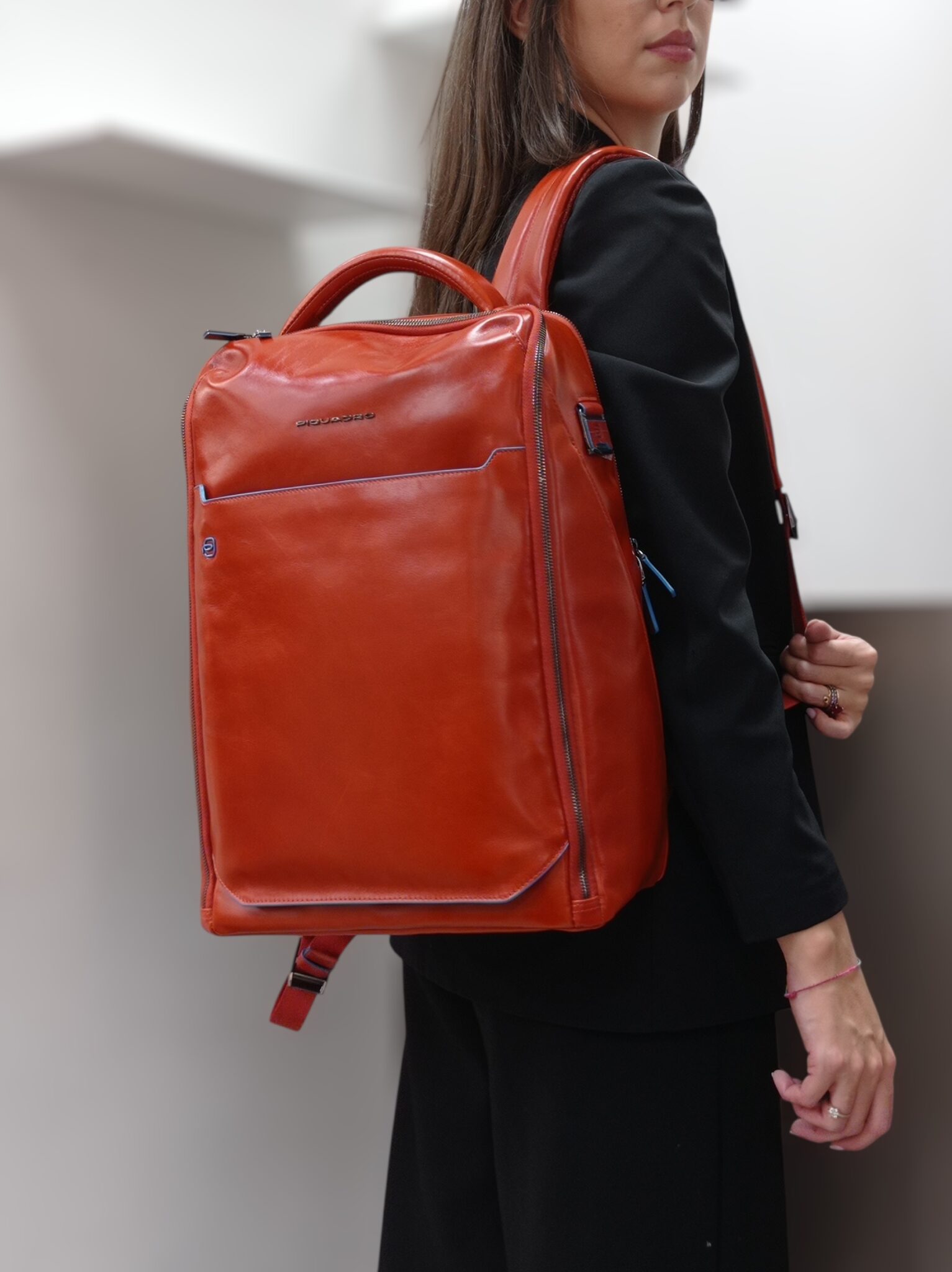 Zaino 15.6 in pelle martellata blu – Piquadro