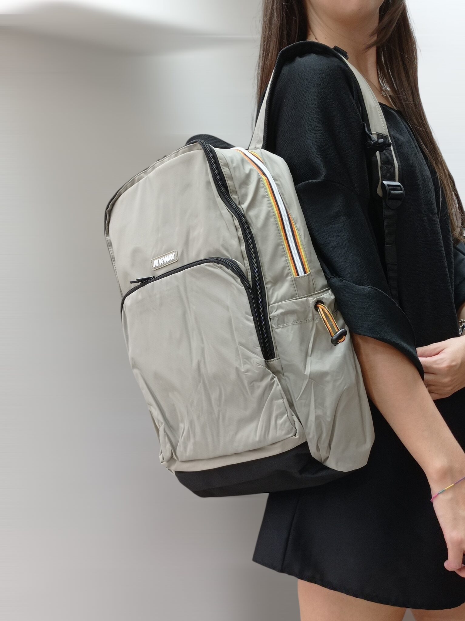 Zaino in nylon squadrato con 2 zip beige LT – Kway