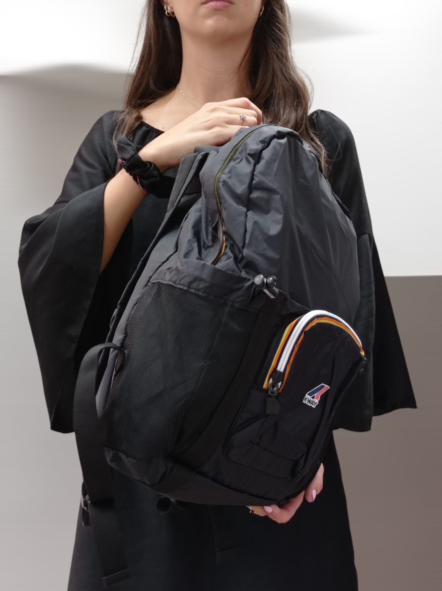 Zaino impacchettabile che concentra il massimo della praticità in un volume ridotto al minimo, perfetto da portare sempre con sé ed essere pronto all’utilizzo in poche mosse. Realizzato in nylon impermeabile, ha una pratica chiusura con zip e spallacci semi imbottiti regolabili. Esternamente è dotato di due tasche frontali con zip di cui una nascosta e delle due tasche laterali con coulisse. All’interno uno scomparto in rete porta oggetti.